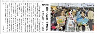 日本関連のイベント「ジャパン祭り」が開催され無事に終了しました。当日はお天気にも恵まれ、たくさんのお客様に北海道ブースへお立ち寄りいただきました。英国 北海道人会のホームページに当日の様子を掲載しています。