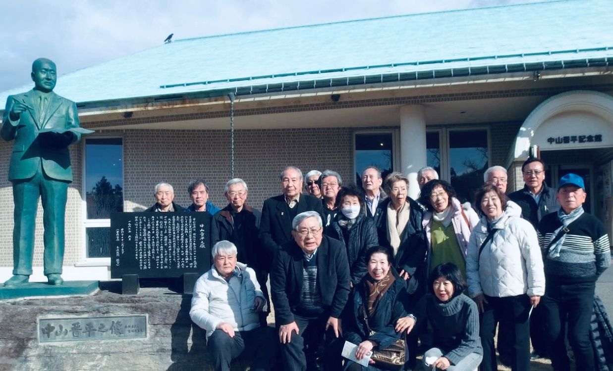 暖かい日差しに恵まれたバス一泊旅行でした。8:30大宮駅西口に集合して出発、美しい山脈を眺めながら風景を楽しみました。皆さん陽気にビールやおつまみ、楽しい会話で親睦を深めました。まずは「一生に一度は善光寺参り」の人気スポット、一光三尊阿修羅如来様を御本尊として創建以来約千四百年の歴史です。宗派を問わず『絶対平等』を説き特に『極楽浄土』現世利益(健康.長寿.魔除け)の信仰が強い境内は参道を含め大規模で圧巻の迫力です。山々に囲まれ豊かな自然のエネルギーに満ちてました。次にホテル近くの中山晋平記念館にも立ち寄りました。作曲で童謡824新民謡291流行歌467学校の校歌467その他222現在判明1805.曲1914年(大正3年)カチューシャの唄を作曲し松井須磨子が歌い大ヒット。晋平は野口雨情と出合い刺激を受け新しい童謡.民謡に情熱を傾けた。有名な歌は数々あれど『シャボン玉』『てるてる坊主』『東京音頭』など多岐にわたります。宿の湯田中温泉『ホテル豊生』は源泉かけ流しの露天風呂で旅の疲れを癒しました。夜のとばりが落ち、楽しみな夕食に宴会、皆様それぞれに歓談やカラオケなどで楽しみました。そして翌日は9:30に小布施へ向い、花の町信州、栗と北斎で知られる歴史ある町です。江戸時代の風情を残す町並み、栗の土産に枡一のお酒を買いました。北斎は空想の動物に魅力されたようで龍や鳳凰をモチーフにした展示でした